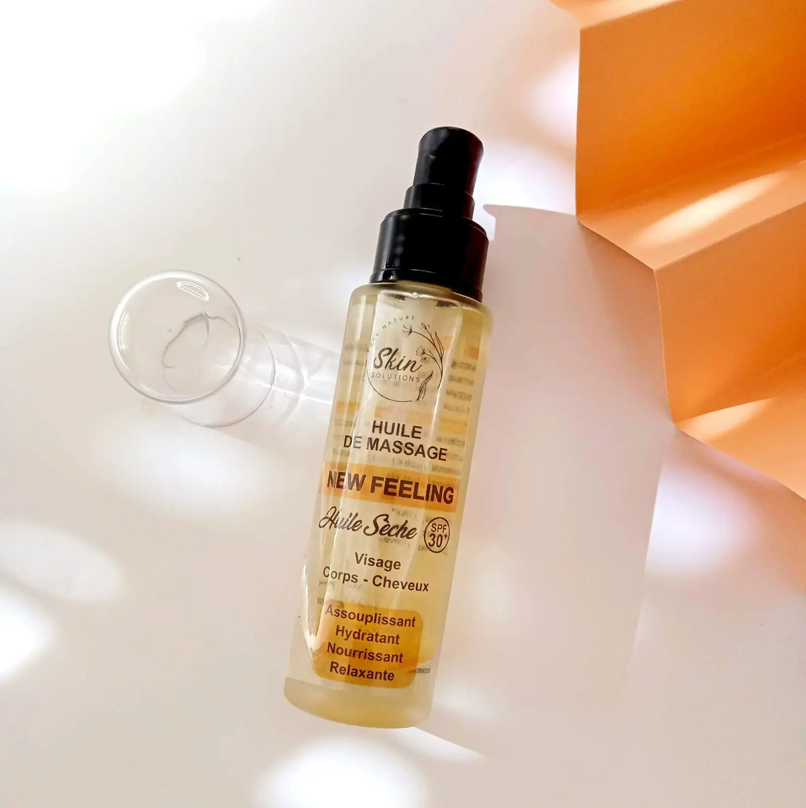 Découvrez notre Huile Sèche Pailletée New Feeling, une fusion unique d’huiles précieuses et de fines paillettes dorées. Spécialement conçue pour le visage, le corps et les cheveux, elle hydrate, illumine et protège votre peau avec une protection solaire SPF 30+.
